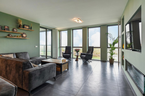 Er is een zeer royale woonkamer van circa 50m² welke beschikt over veel raampartijen, met prachtig uitzicht op de "Voorweg" en zeer veel lichtinval. Vanuit de woonkamer wordt via een schuifpui, tevens het balkon bereikt, welke circa 15m² groot is en gesitueerd op het oosten, waardoor u al vroeg van de zon kunt genieten.
